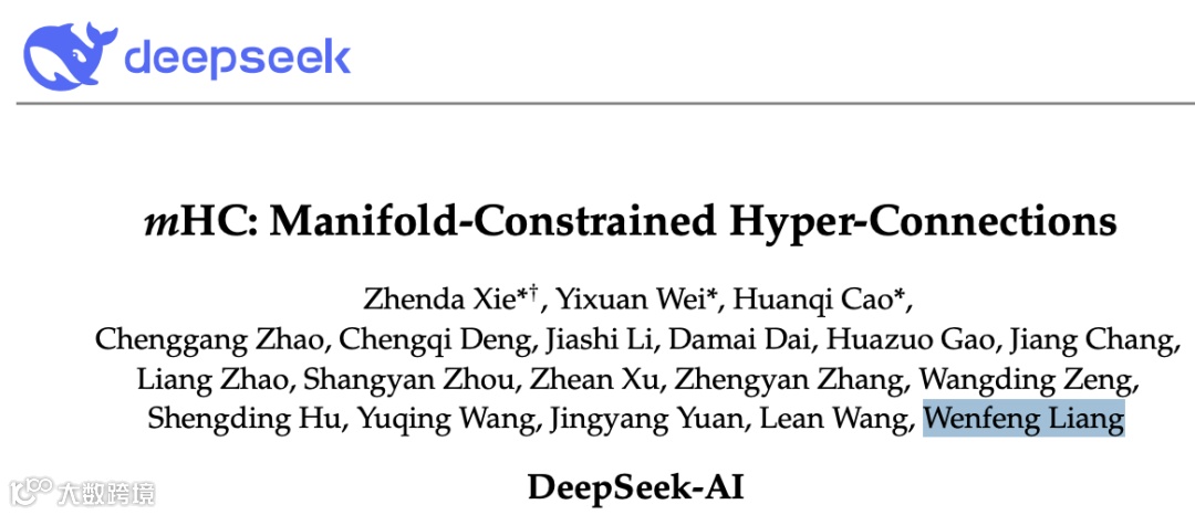 2026年1月1日,DeepSeek发布梁文锋署名的重磅论文,提出「mHC(流形约束超连接)」新架构。该方案在27B参数模型上仅增加约6.7%训练时间开销,即可显著提升性能与训练稳定性。