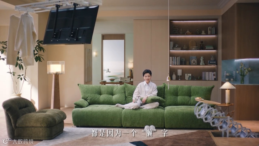 短片通过具象生活场景,将宏观情绪落地为可触达的日常体验:上半身主播装束、下半身毛茸茸家居裤与拖鞋;“发布会”背景墙一拉开,露出家中客厅——镜头切换间完成“在线营业”到“下线回家”的松弛转化 [4] 。