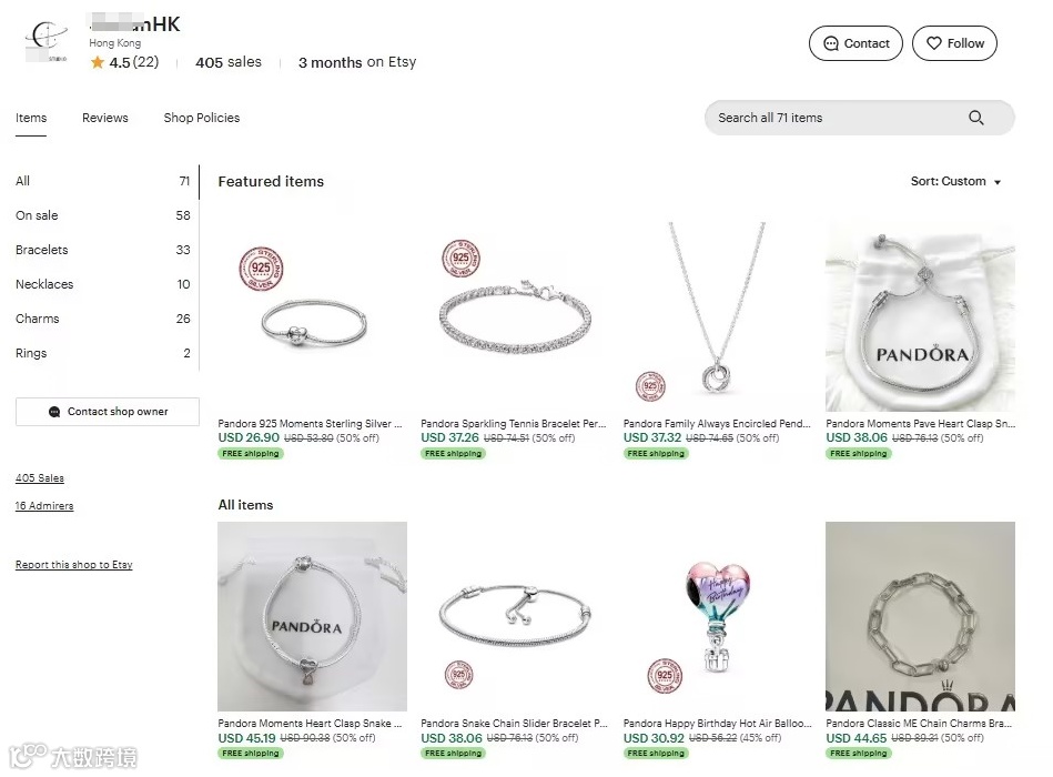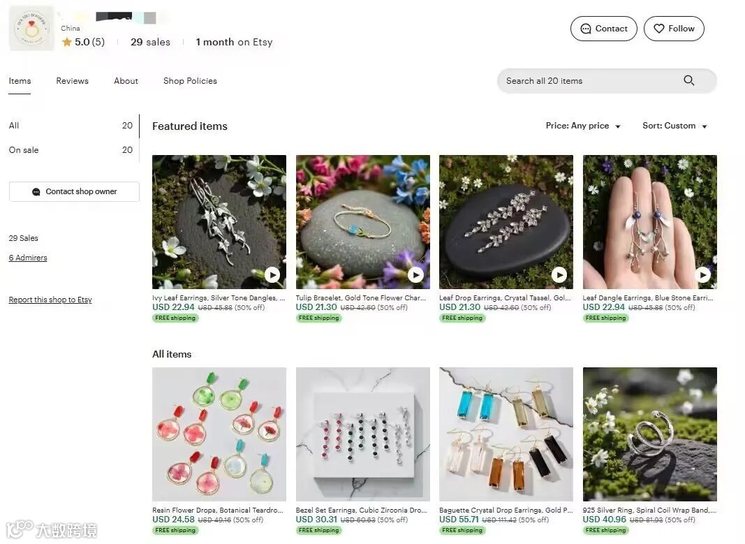 该店以珠宝首饰类目为主——Etsy平台第一大类目,具备高流量与强转化基础。