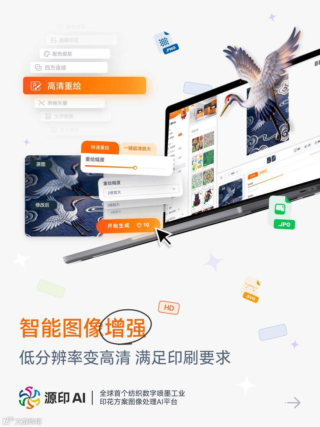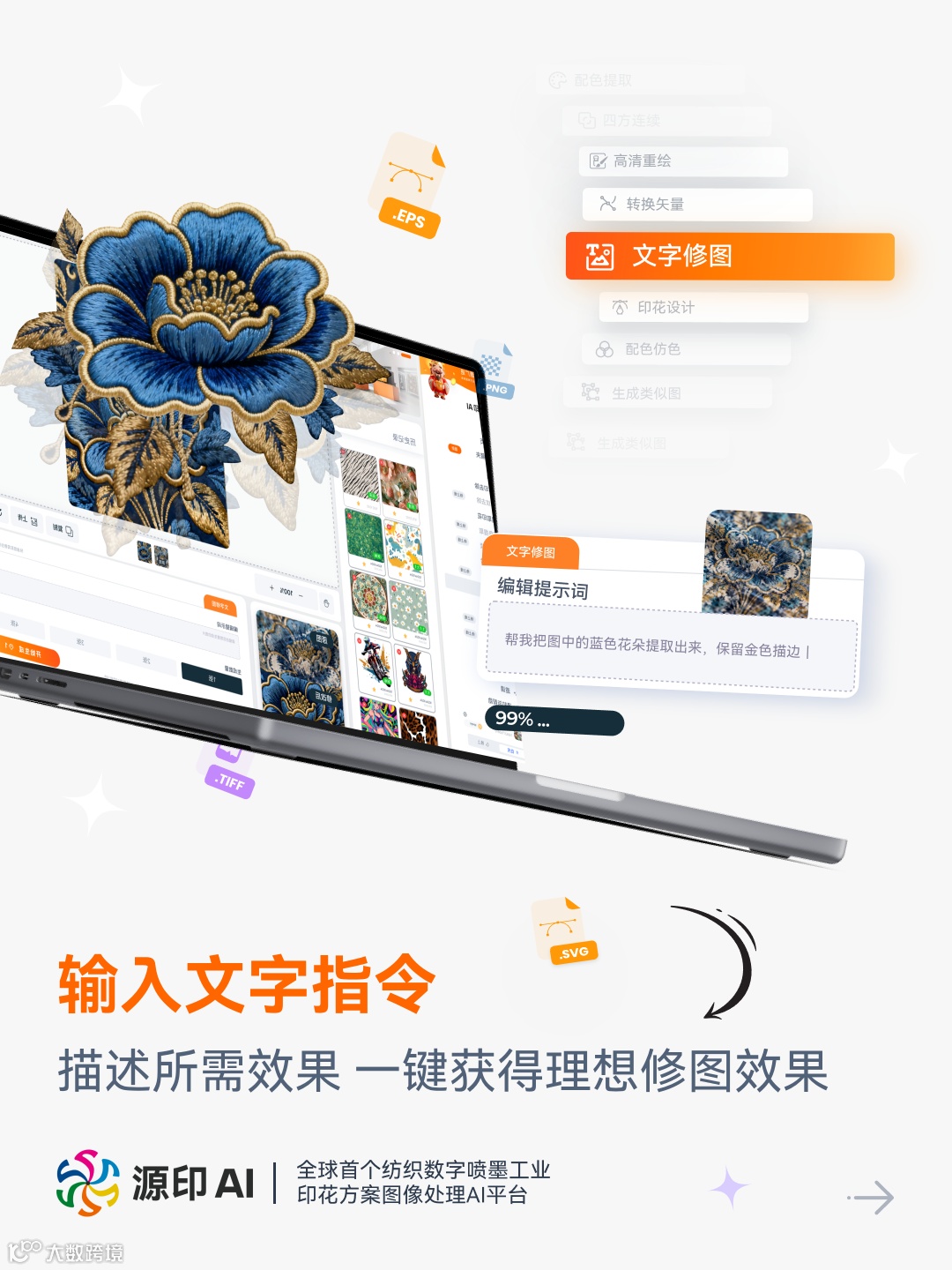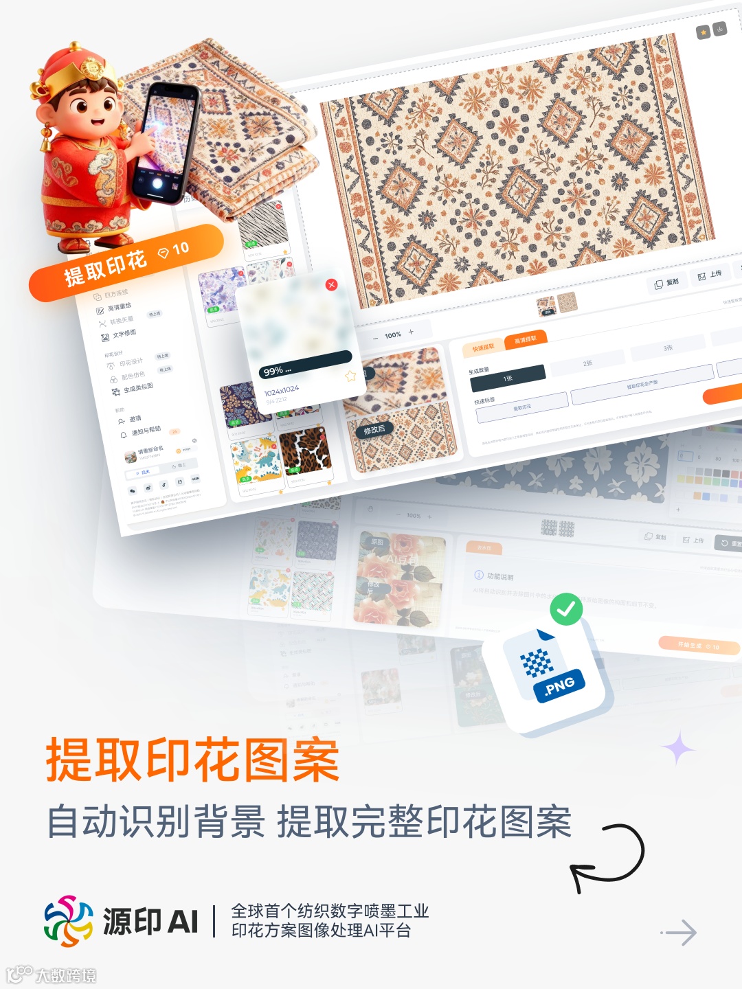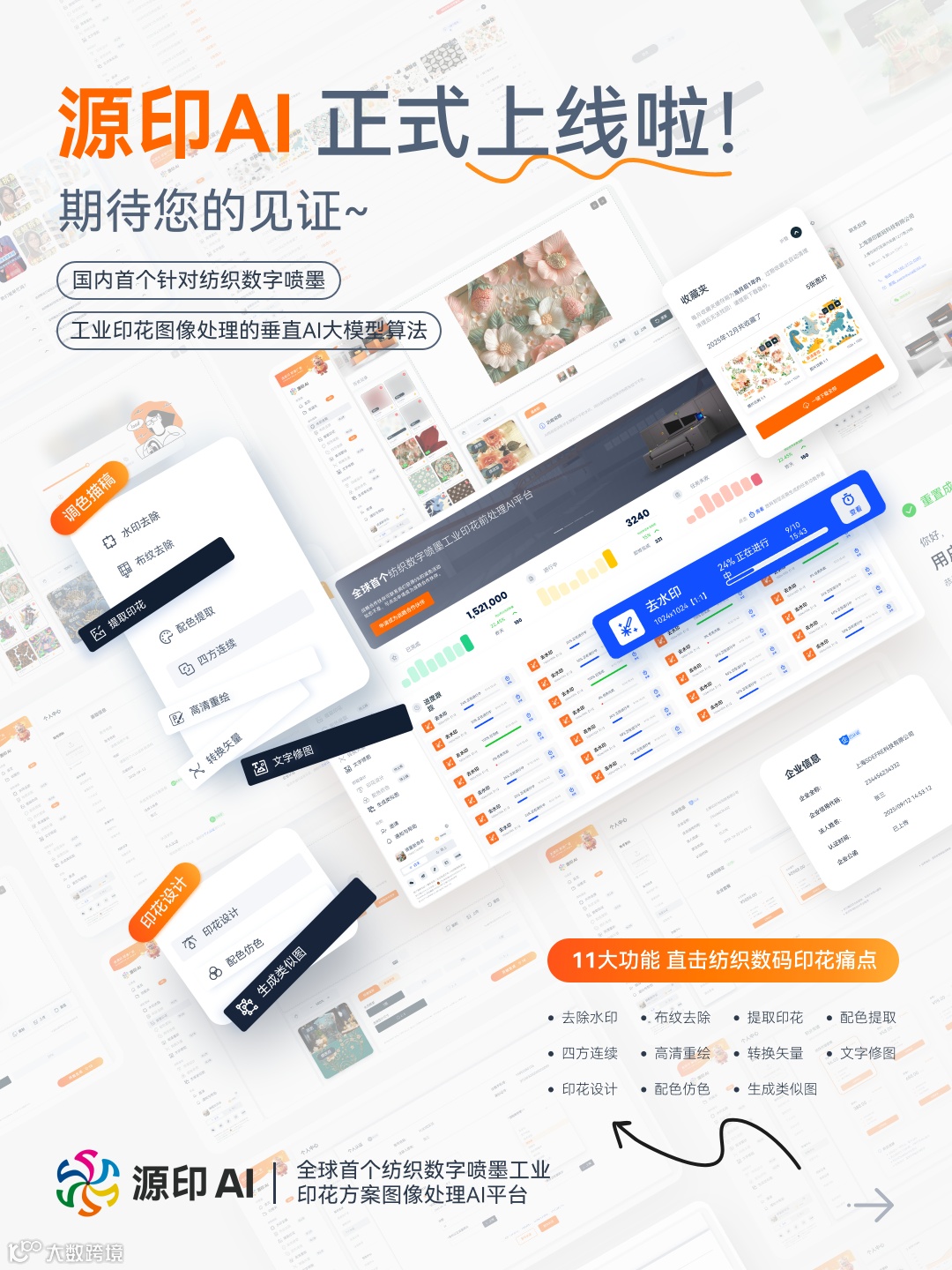 纺织数字喷墨工业印花方案服务「源印AI」平台重磅登场!——将印花设计从“小时级”压缩至“分钟级”!