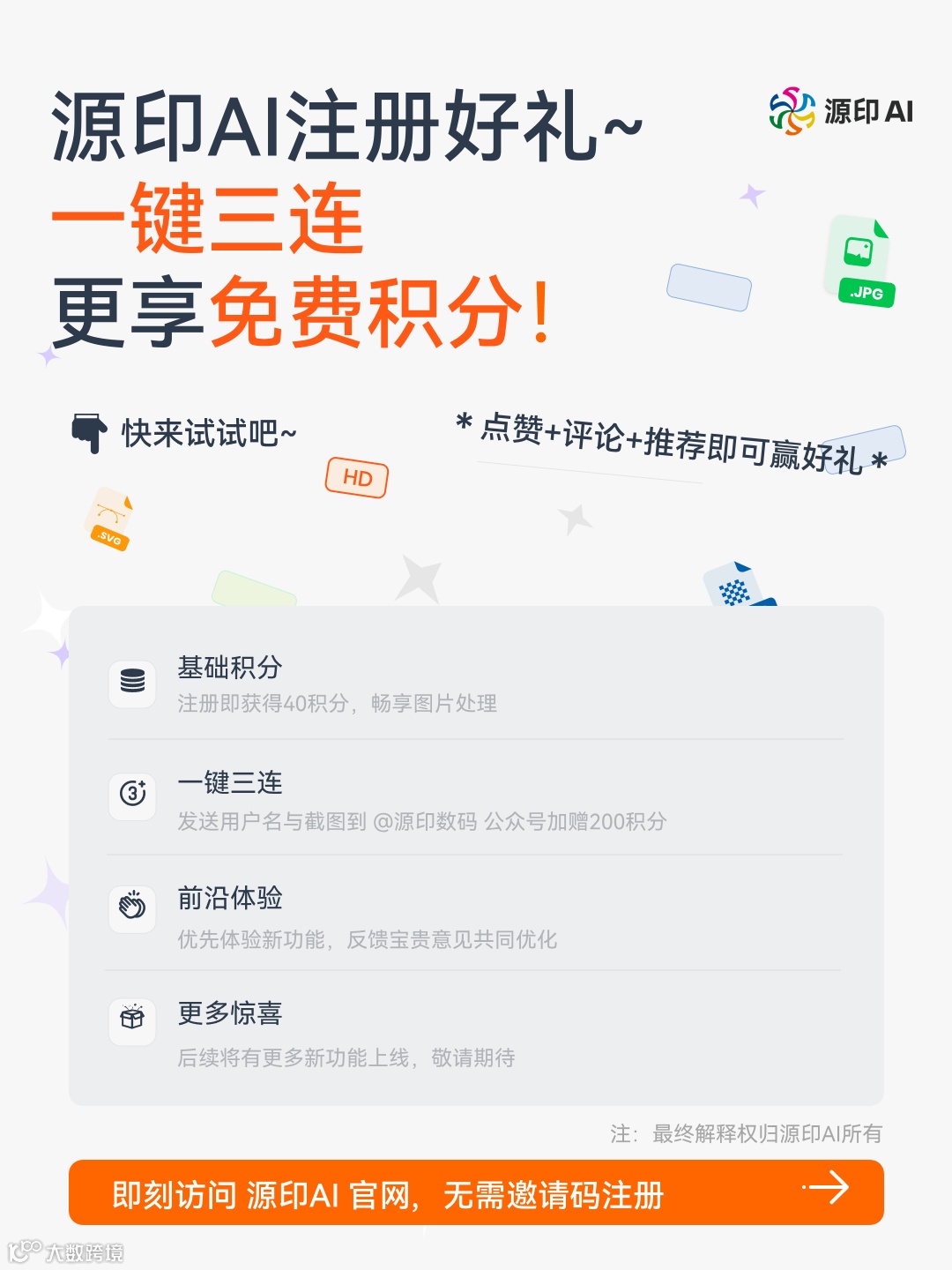 🎁 新客礼:新注册即赠40积分,立即体验AI魔力!