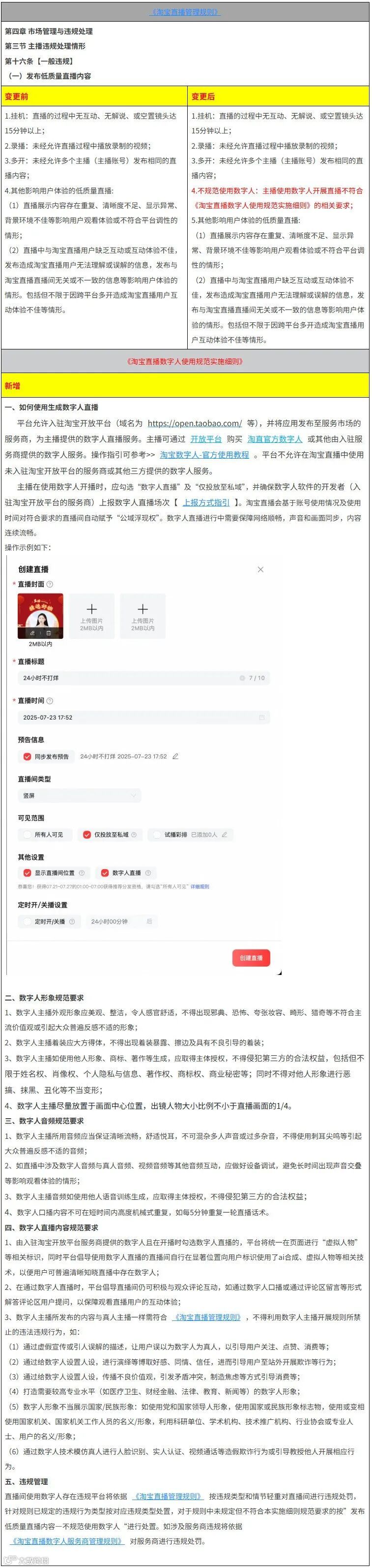8月13日消息,淘宝直播将新增《淘宝直播数字人使用规范实施细则》。