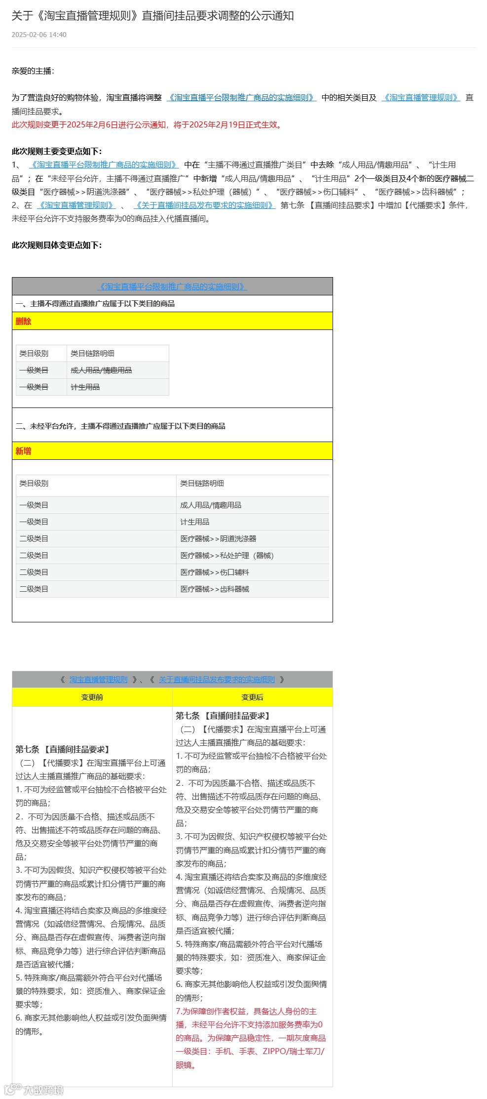 2月10日消息,为了营造良好的购物体验,淘宝直播将调整《淘宝直播管理规则》直播间挂品要求,新增“代播要求”条件,未经平台允许不支持服务费率为0的商品挂入代播直播间。