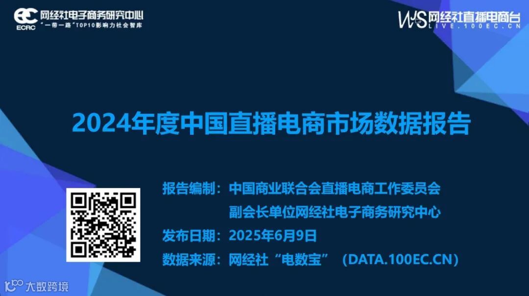 6月9日,中国商业联合会直播电商工作委员会副会长单位网经社电子商务研究中心例行发布《2024年度中国直播电商市场数据报告》,该报告已是第七次发布。本报告根据电商大数据库“电数宝”(DATA.100EC.CN)编制而成。