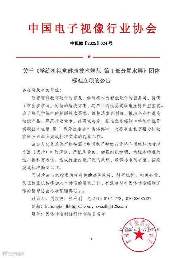6月10日消息,近日,中国电子视像行业协会宣布,《学练机视觉健康技术规范》团体标准正式通过立项审核,将由学练机品类开创者小猿学练机牵头制定。作为我国首个聚焦学练机护眼性能的行业技术标准,该标准的制定标志着学练机领域将正式进入规范化、科学化发展阶段。