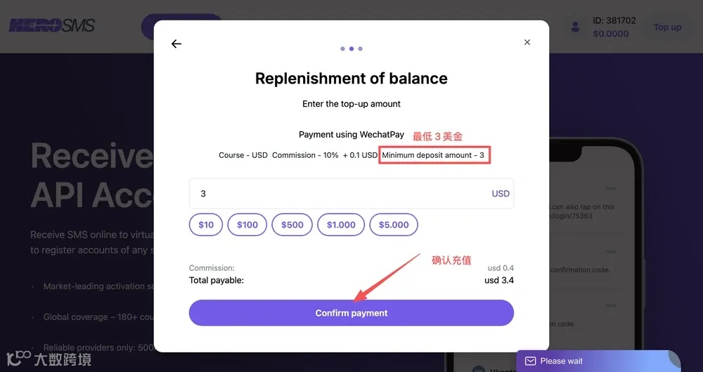 目前,Hero-SMS 支持网友们常用的收款方式,加密货币、微信和支付宝。不过,根据官网的数据显示来看,加密货币 (0.05%) 的充值手续费要比微信和支付宝 (10%+$0.1) 便宜很多,并且微信和支付宝的最低充值额为 3 美金。
