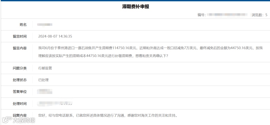 我司6月份于泰州港进口一票石油焦并产生滞期费114750.16美元,近期和外商达成一致口径减免7万美元,最终减免后的金额为44750.16美元,按我理解应该按实际产生的滞期成本44750.16美元进行补缴滞期费,想着和贵关再确认下?