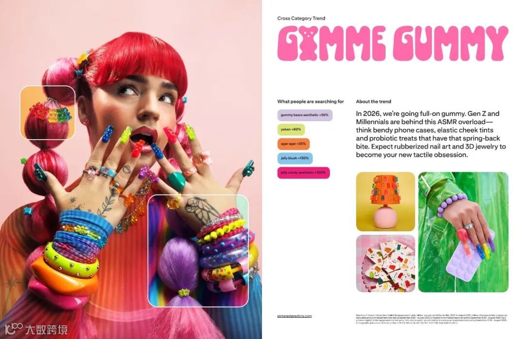 新一代年轻人正在推动这一ASMR趋势:柔韧的手机壳、弹力腮红和具有回弹口感的零食。预计橡胶化的指甲艺术和3D珠宝也将成为新的触觉享受。