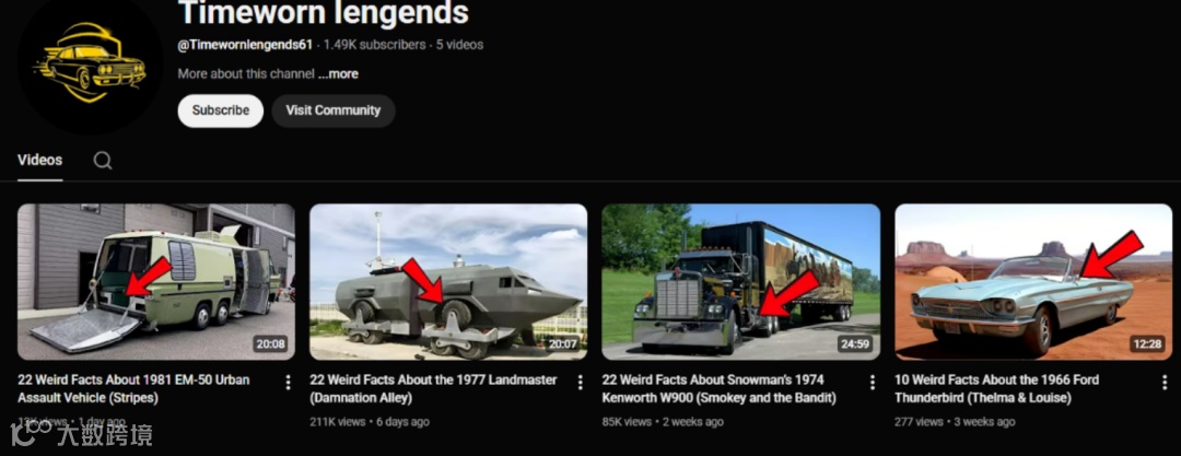 该频道四条视频累计播放27万,虽缩略图设计简陋,但方向精准。