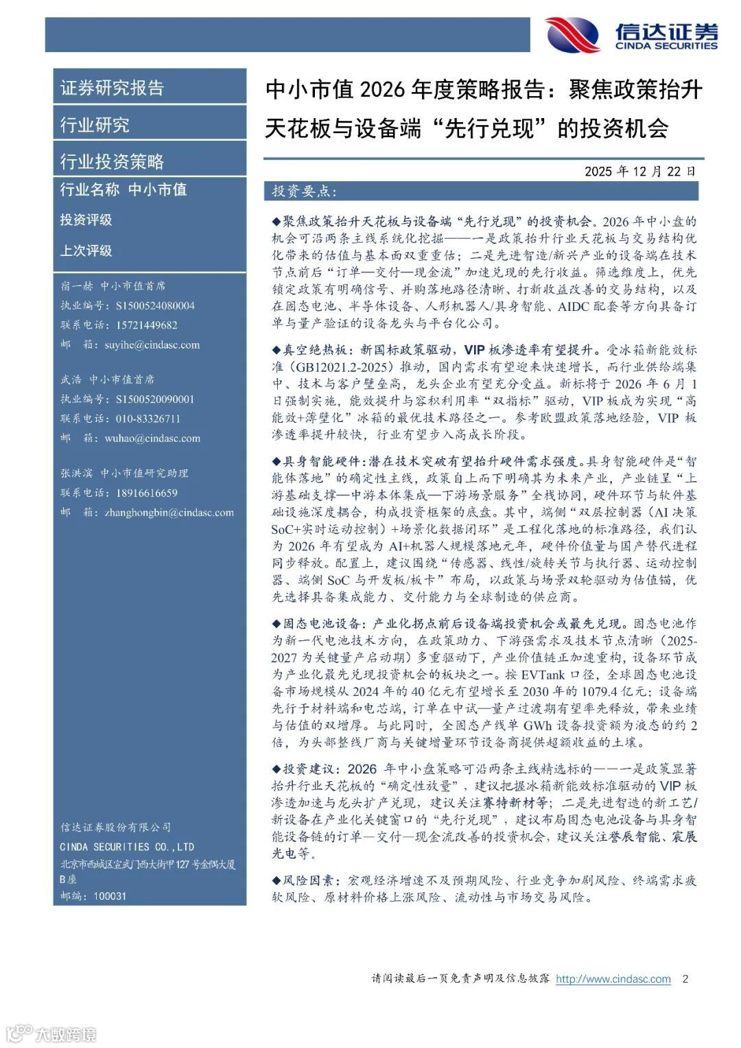 中小市值2026年度策略报告:聚焦政策抬升天花板与设备端“先行兑现”的投资机会(附下载)