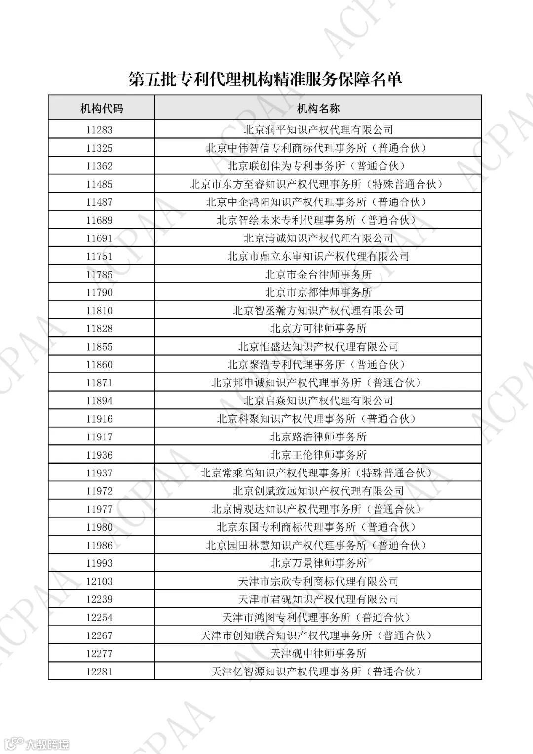 近日,中华全国专利代理师协会发布《关于公布第五批专利代理机构精准服务保障名单的通知》,正式公布第五批入选机构名单。