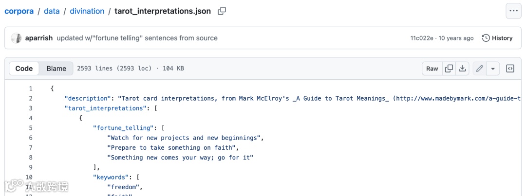 以上图为例,这是一份完整的塔罗牌解读数据集,指标详尽,可直接用于内容加工或搭建垂直领域网站。