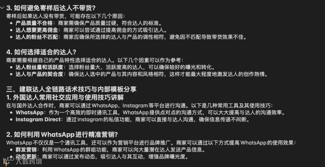 5. 沟通技巧:提升回复率 首句话术模板 : “Hi [达人昵称],我们是[品牌],您的内容风格与我们的[产品]非常匹配!合作佣金XX%,支持免费寄样,期待您的回复!” 跟进策略 :若未回复,3天后发送简短提醒,避免频繁打扰。 总结 成功的达人营销需利益驱动+信任建立+高效执行 。商家需从达人角度出发,优化佣金、产品、服务全流程,并通过精准话术提升合作率。最终实现达人愿意推、粉丝愿意买 的良性循环。