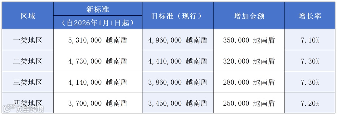 越南政府从1月1日起上调签订劳动合同劳动者的最低工资标准。最低月工资在四个地区分别上调至531万、473万、414万和370万越盾,较之前增加25万至35万越盾。