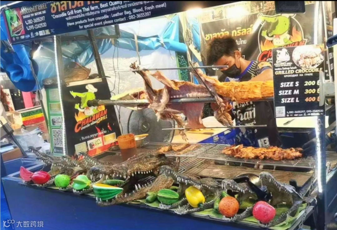 先来个开胃菜,吃点特色,在泰国,吃烤鳄鱼不算稀奇。别担心,这些都是合法养殖的,不是野生保护动物。没有什么特殊的味道,就跟吃鸡肉类似。图中是泰铢价格。