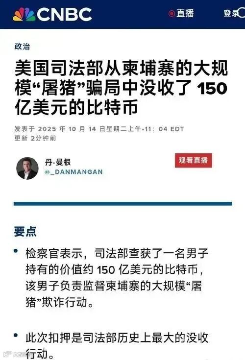2025年10月,美国司法部与英国政府联手发起执法行动,直指柬埔寨太子控股集团,涉案比特币资产超150亿美元,洗钱规模达40亿美元。