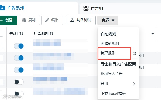 另外补充一点,因为我当时不仅仅是一位投手,也是一位要管理二十多个优化师的渠道管理人,手上上百个账户,时间和精力上肯定是有限,所以我给每个账户都设置了自动规则。比如利用自动规则帮我关掉CPC较高,ROI不达标的广告,这不仅节省了大量时间,还避免浪费不必要的花费。怎么设置,如下图,具体设置指标和条件,你们可以根据自己的实际业务情况去设置。