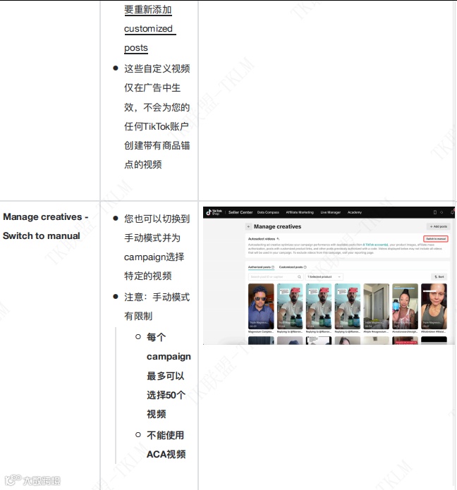 Product GMV Max 可自动从可用 TikTok 账户中提取含商品锚点的视频及 Spark Ads 下的帖子,并上传至广告账户作为广告素材。在自动选择模式下,该工具还能复用 VSA 曾使用过的视频(包括无商品锚点、仅用于广告的视频),提升创意复用效率。