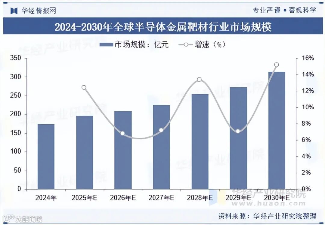 随着电子产品向小型化、高性能化发展,半导体芯片集成度不断提升,对高精度、高纯度金属靶材的需求日益旺盛。在光刻、蚀刻等关键工艺环节,靶材用于制备导电线路与阻挡层,重要性日益凸显。全球半导体产能扩张及新建晶圆厂项目持续推进,进一步拉动靶材市场增长。预计到2030年,全球半导体金属靶材市场规模将达314.44亿元。