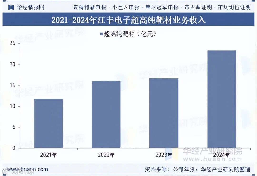 江丰电子专注于超高纯金属溅射靶材研发与生产,产品广泛应用于半导体芯片与平板显示领域。靶材的一致性与稳定性对下游镀膜质量至关重要。据公司年报披露,2024年其超高纯靶材业务收入约为23.33亿元,处于国内领先地位。