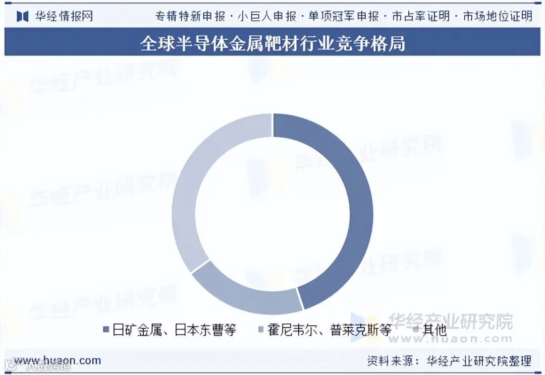 全球半导体金属靶材市场呈现高度集中与专业化特征,日矿金属、江丰电子、霍尼韦尔、日本东曹、林德、普莱克斯、世泰科等龙头企业占据主要市场份额,主导高端靶材供应,形成寡头垄断格局。