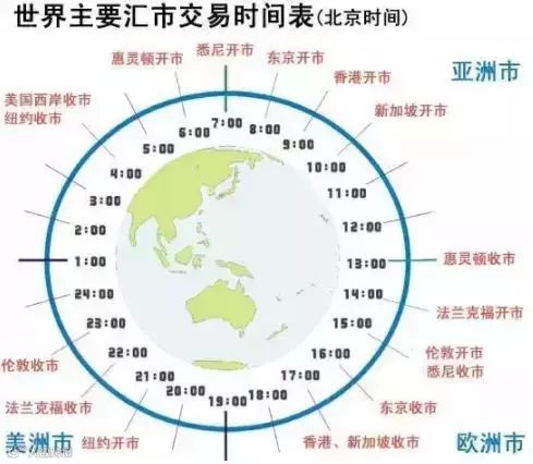与地域性强、交易时段固定的股票市场不同,外汇市场由全球主要金融中心无缝衔接运行:新西兰惠灵顿开市后,澳大利亚、东京、新加坡、伦敦、法兰克福、纽约市场依次接力,实现全天候不间断交易。