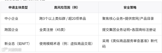 过宽的范围会跨越多個 「类似群」(類似群コード),显著提升与在先商标冲突概率