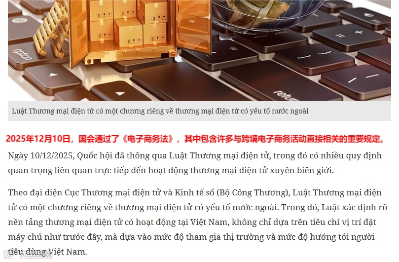 监管体系也在快速完善。今年,越南国会通过《2026-2030年电子商务发展总体规划》及首部《电子商务法》,标志行业进入法治化新阶段。