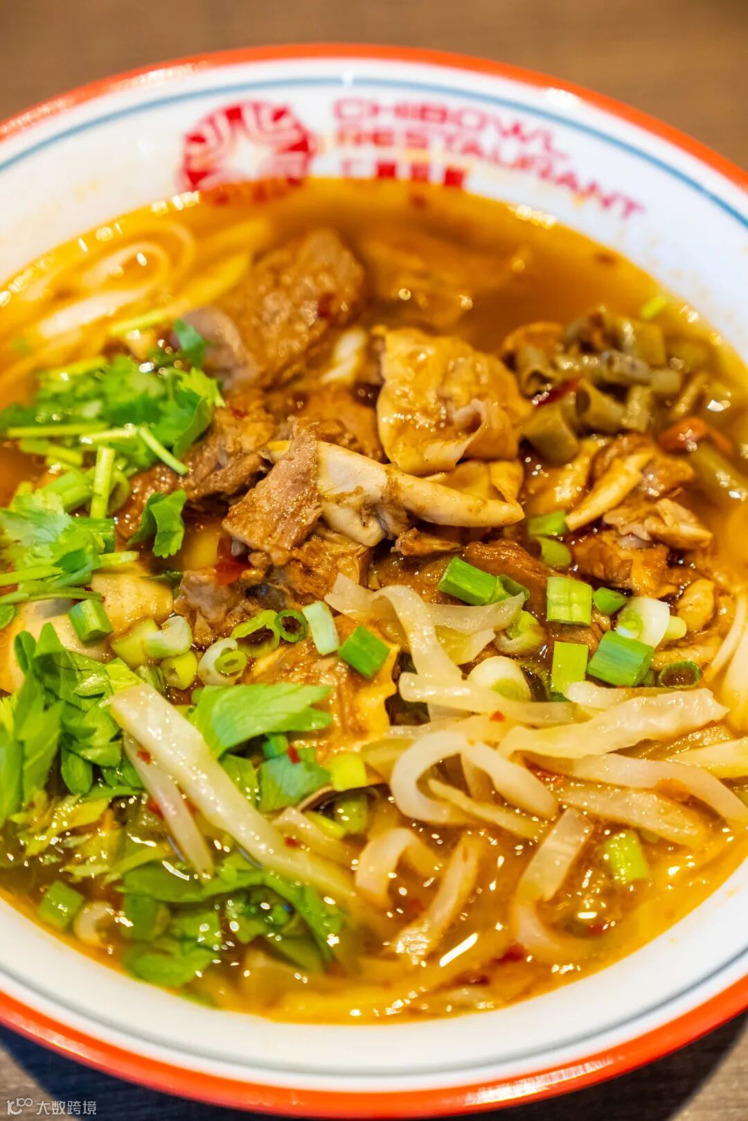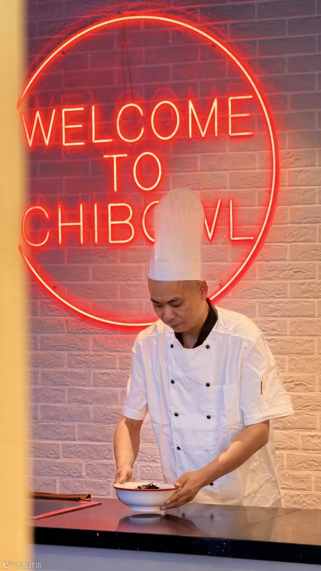 推开七宝餐厅的门,首先映入眼帘的是醒目的 “WELCOME CHIBOWL” 英文标识,简洁利落。店内无繁复装修,暖黄灯光、简约桌椅、干净明亮的出餐区,拿号自取、小料台自助添加,处处体现“专注吃粉,认真吃饭”的朴实氛围。