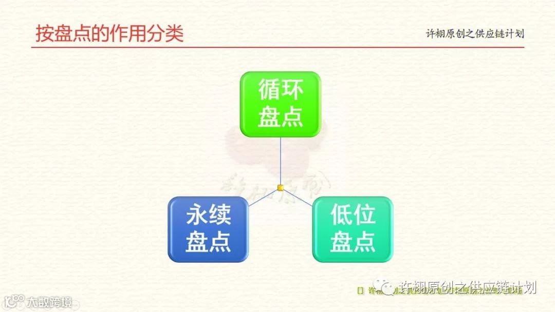 分为循环盘点、永续盘点和低位盘点,旨在平衡盘点精度与作业效率。
