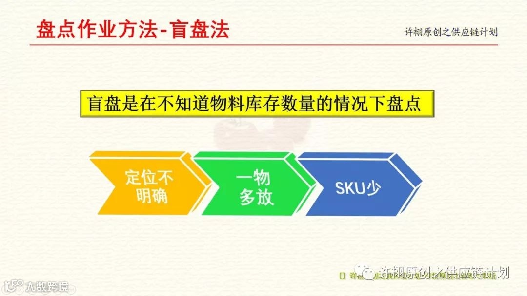 盘点方法指具体操作路径,直接影响准确率与效率。主流方法包括盲盘法、点盘法、唱盘法和双向盘点法,可组合使用形成综合盘点策略。