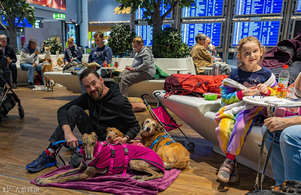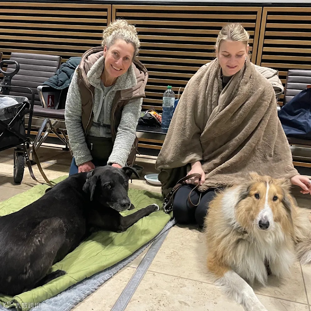 航站楼“露营”:更多人如动物训练师劳拉与安妮克,直接在候机大厅铺开毯子“安营扎寨”。她们陪伴着9岁的柯利犬休伯特和13岁、患心脏病与癌症的混血犬马里。