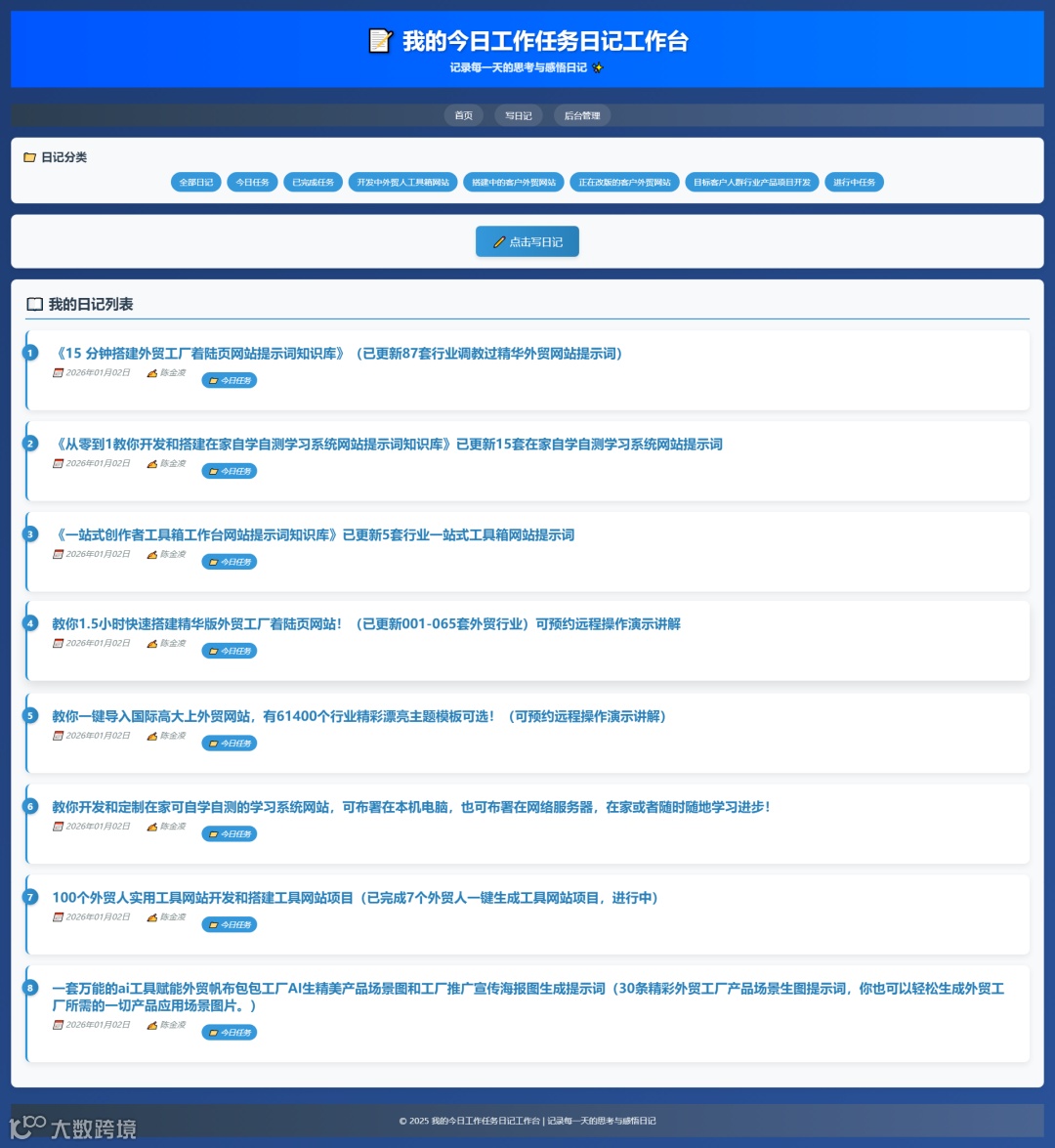 你也想要一个这样的《今天任务日记工作台》工具网站系统,我教你。
