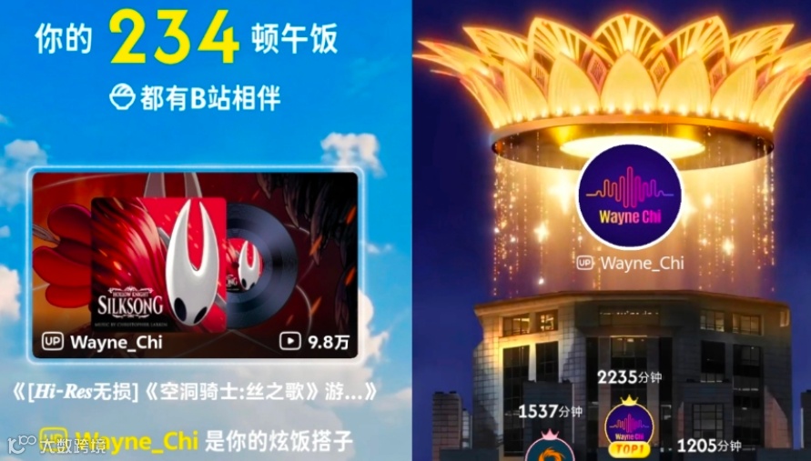 前两天一翻B站的总结,我发现今年看最久的UP主自己根本不认识,想了半天不得其解,一直翻到后面才总算解惑,原来这位UP主传过《丝之歌》的OST——是我今年循环最多的视频。