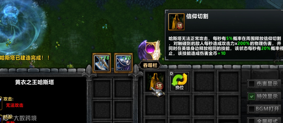 另外,最近刷图过程中又遇到一个效果不错的塔,这个塔就是信仰切割,理智系还是玩概率的比较多,所以这个塔也是如此,但实战效果还是不错。