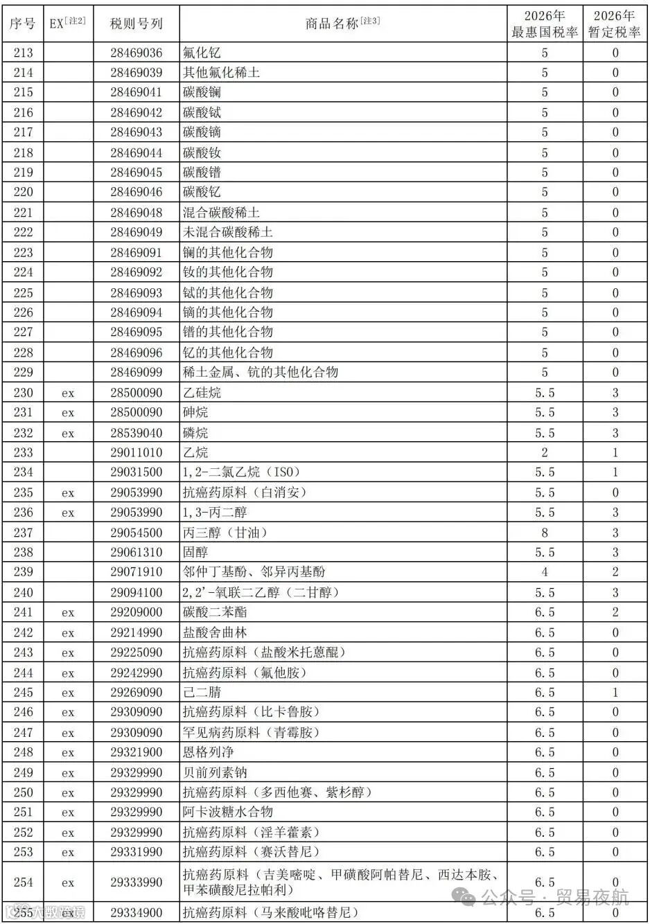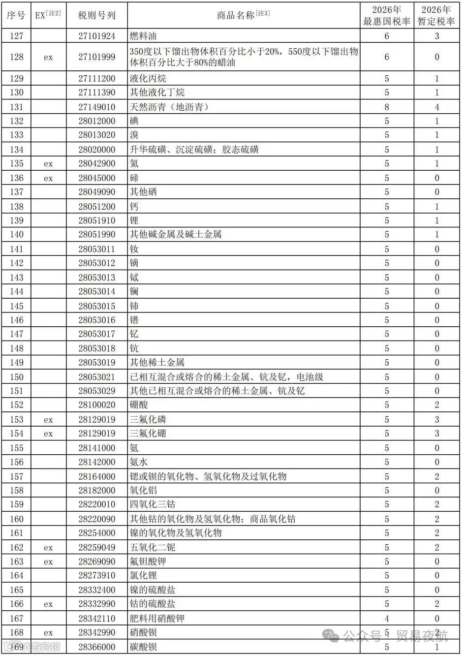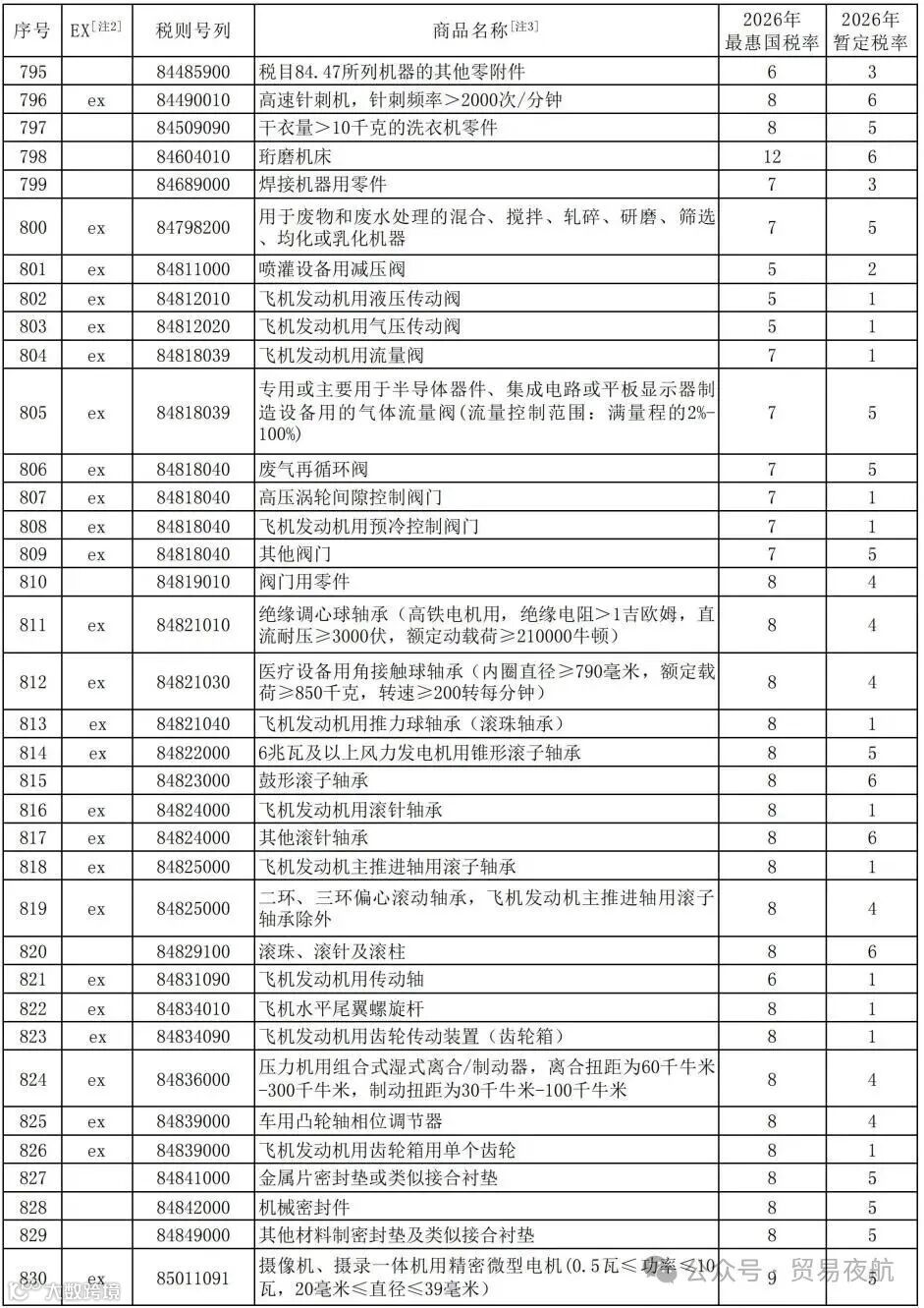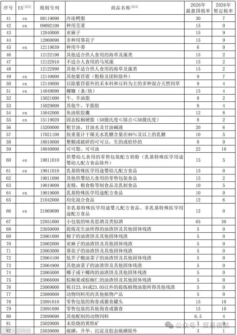 ●取消微型电机、印花机、硫酸等商品的进口暂定税率,恢复实施最惠国税率。