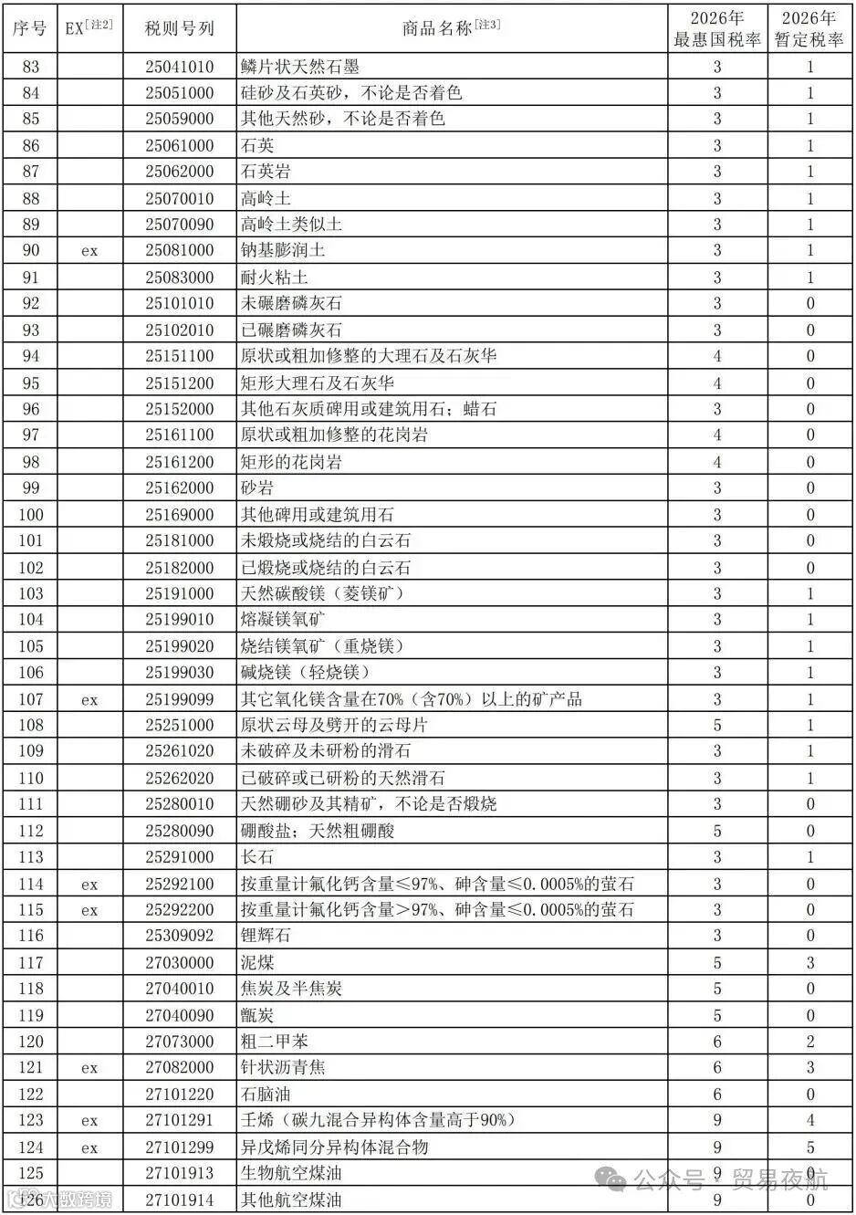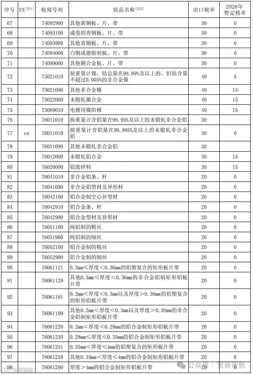 继续对铬铁等 107 项商品征收出口关税,对其中 68 项商品实施出口暂定税率。(附 3)