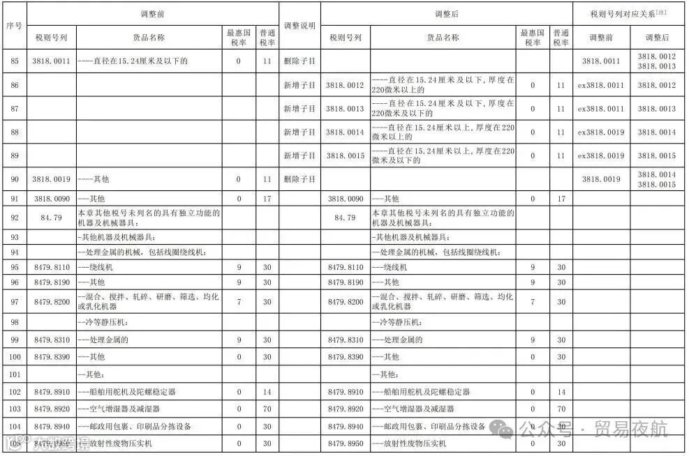 对部分税目、本国子目注释进行调整(附 4、5)。调整后,本国子目 8972 项,本国子目注释 201 条。