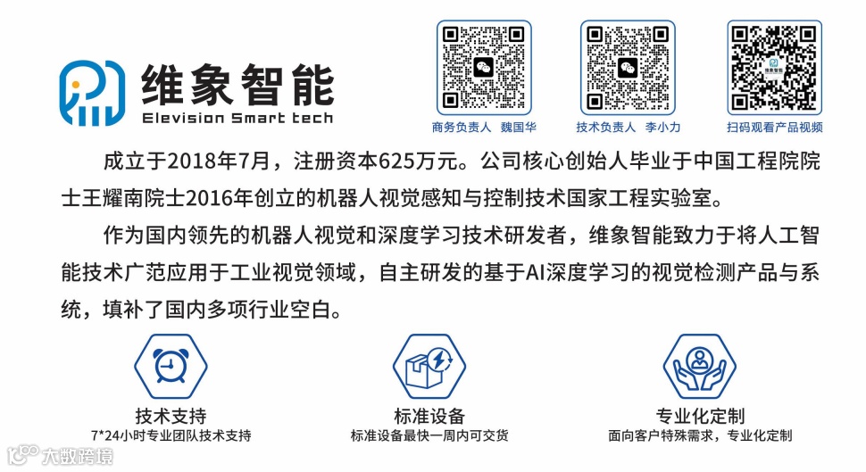 深圳市维象智能科技有限公司是国内领先的机器人视觉与深度学习技术研发企业,专注于工业视觉领域,自主研发基于深度学习的视觉检测产品与系统。