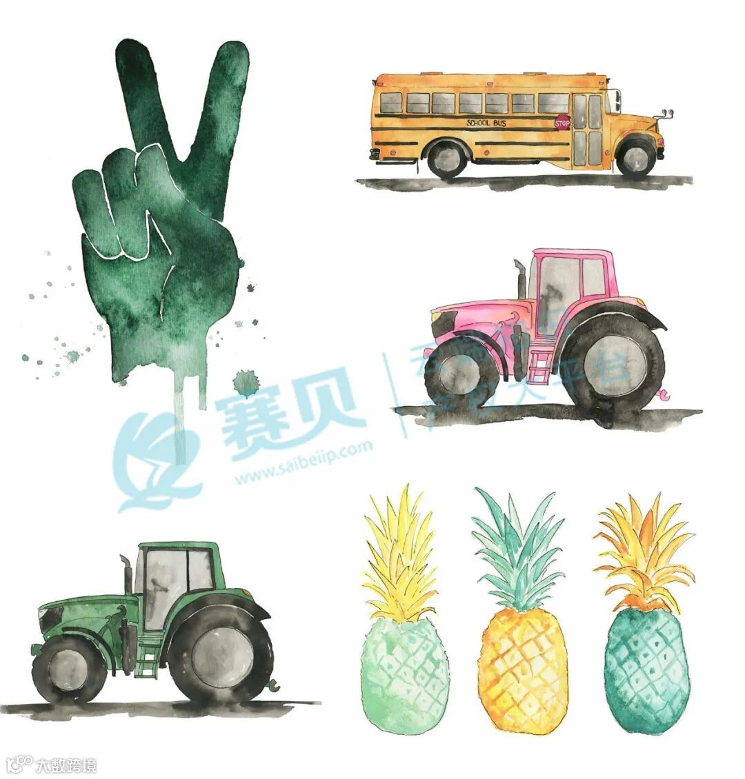 本次维权涉及5项已登记水彩作品,登记号分别为VA 2-428-493、VA 2-428-497、VA 2-428-464、VA 2-428-512、VA 2-428-540,对应作品名称为《Green Tractor》《School Bus》《Tropical Pineapple》《Pink Tractor》《Peac》。跨境卖家须注意:未经许可使用即构成侵权风险 [4] 。