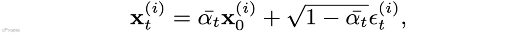 我们的 Diffusion 也是一个 multi-view diffusion,不过与之前的 multi-view diffusion 不同的地方在于 (1) 是 pixel space 的,(2) 将 3DGS 点云嵌入其中来增强三维视角的一致性。首先,在训练阶段,我们模型的输入是一张干净图像和 N 张噪声图像,以及这 N+1 张图像对应的相机位姿。前向过程就是逐步对 N 个视角加噪声如下: