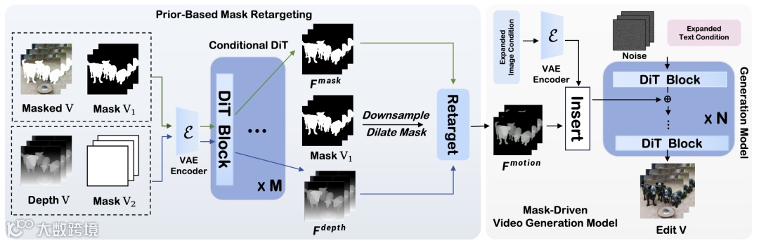 由新加坡国立大学、南京理工大学、香港科技大学以及南京林业大学提出的 IMAGEdit 是一个无需训练、即插即用的框架,可调整提示并重新定位蒙版,以实现任何主题的视频编辑。