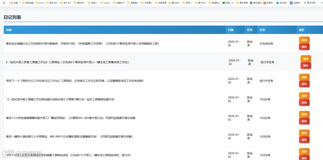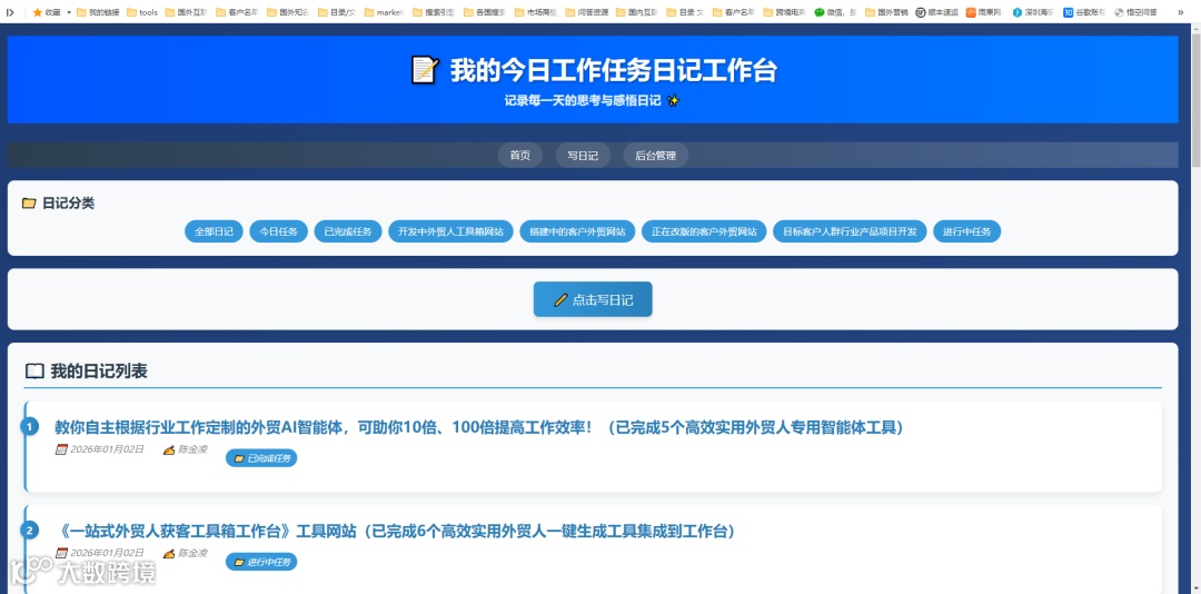我用提示词和AI工具写搭建了1个《我的今日工作任务日记工作台》工具网站,记录每天工作日记和灵感,以及整理各项目工作任务进程和资料!