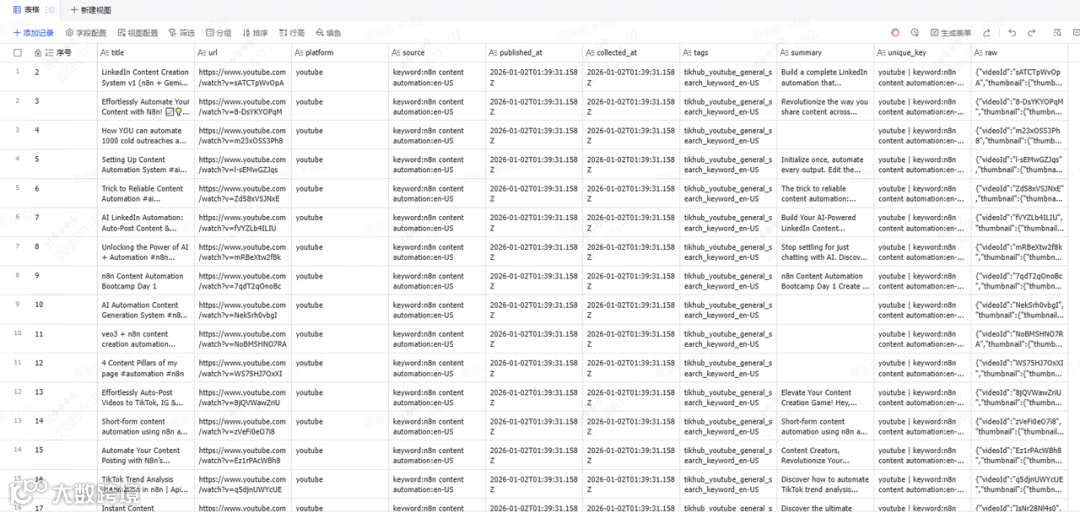 按“关键词”筛选,如“n8n AI” → 得到 3 条“n8n + AI 自动生成内容”案例;