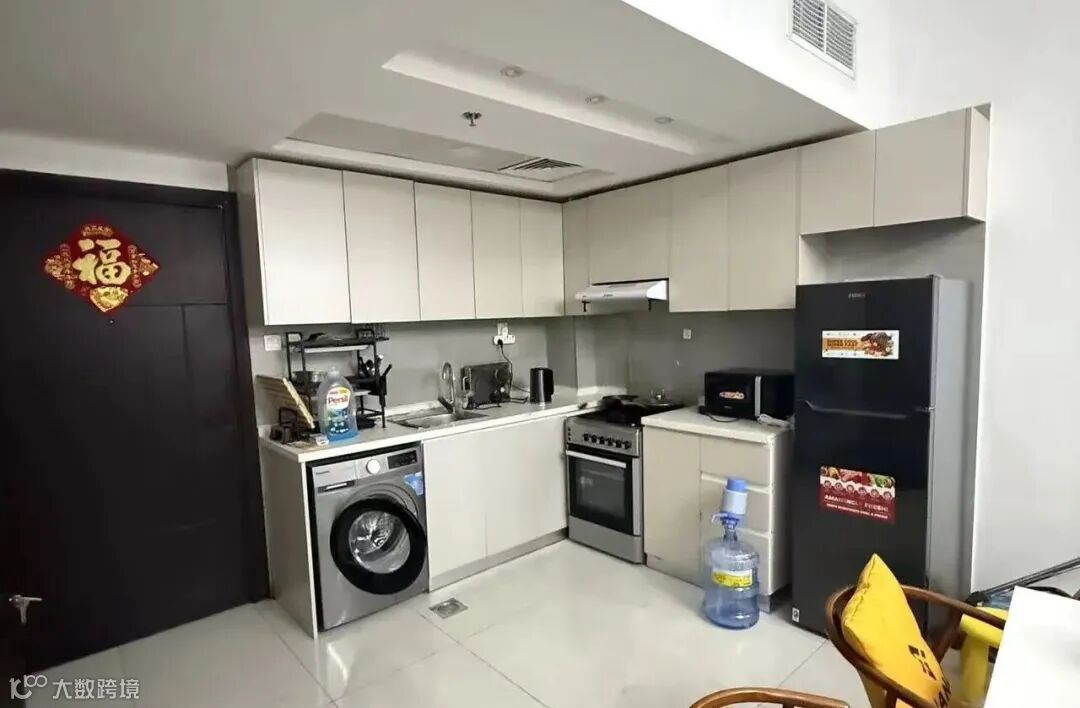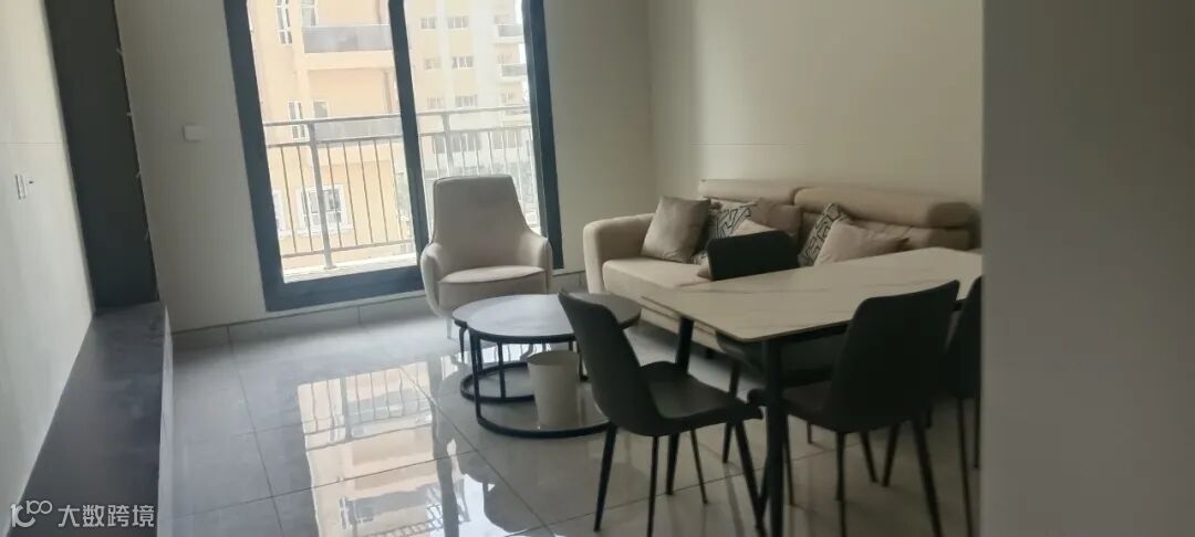 年租5.5万迪拉姆,分四次付款;配车位、全套家具家电,拎包入住。