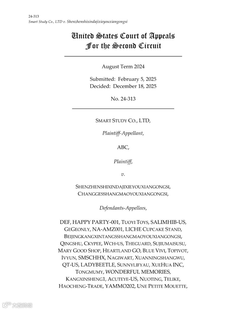 2025年12月18日,美国联邦第二巡回法庭在“SMART STUDY诉深圳市鑫大机械有限公司案”中作出重要裁定:当被告为中国境内企业且地址明确时,美国原告不得再以电子邮件方式单方面向中国电商卖家送达临时禁令(TRO),必须严格遵循《海牙送达公约》规定的完整司法送达程序。