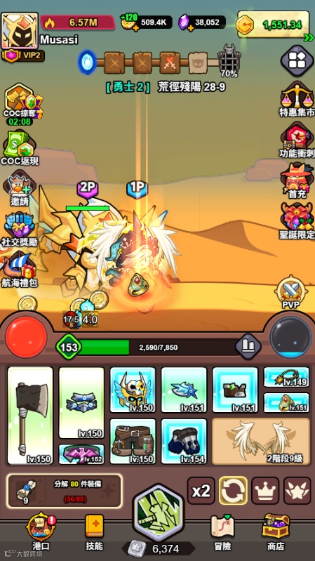 1) 战斗石战斗:每轮约获得340 COC(收益随时间波动)。