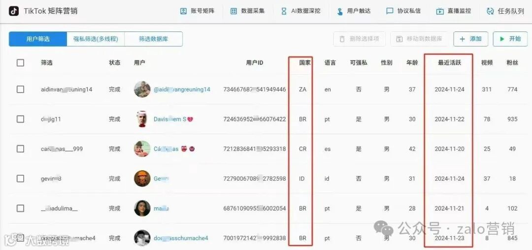 直播间实时截流:通过API接口实时抓取直播间用户ID、评论内容及互动行为,例如某美妆品牌可筛选出“停留时长>30秒+评论含‘成分’‘价格’关键词”的高意向用户。