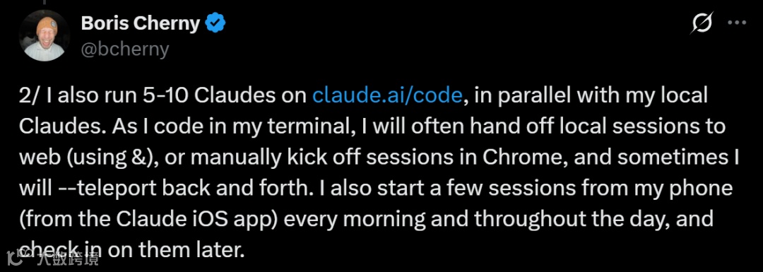 2. 在claude.ai/code平台同步开启5–10个会话,并通过Chrome手动调度或手机iOS应用(每日晨间启动多会话)协同使用;