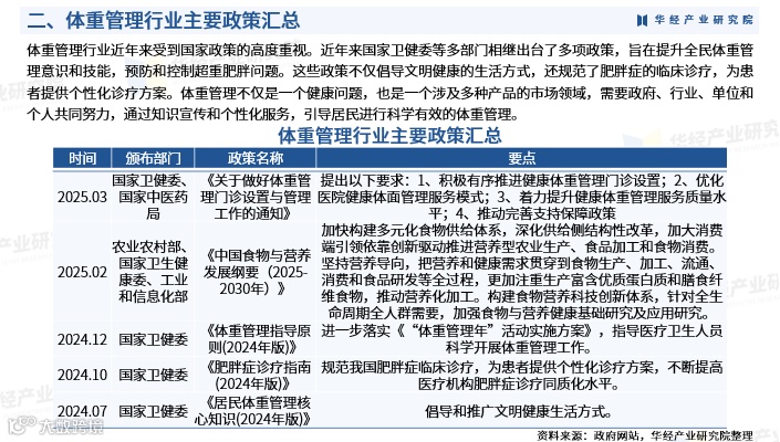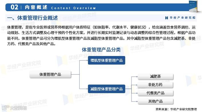 华经产业研究院发布《2026-2032年中国体重管理行业市场深度分析及投资价值评估报告》,基于多年行业跟踪研究,采用桌面研究与定量、定性分析相结合的方法,全面解读体重管理行业现状,深入挖掘潜在商机。报告科学运用研究模型,从发展环境、市场竞争格局、重点企业经营情况等维度,系统评估行业发展轨迹与投资风险,为企业、科研机构及投资方提供决策支持。